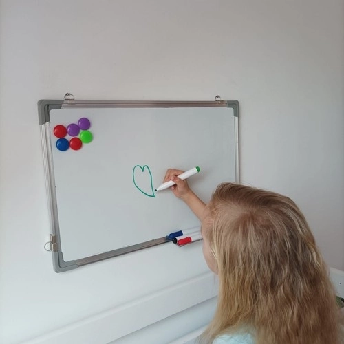 De toepassingen van dit bord zijn zeer divers – van het maken van belangrijke notities en diagrammen tot educatieve toepassingen zoals wiskunde of tekenen. Met de magnetische functie kun je belangrijke documenten aan het bord bevestigen met behulp van de tien meegeleverde gekleurde magneten.