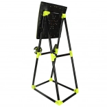 Duurzame constructie met groen‑zwarte koppelingen staat zelfstandig en houdt dankzij de houders de accessoires altijd binnen handbereik.
