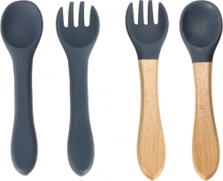 - verdeelbord, kom, beker met 2 deksels + rietje, 2× vork, 2× lepel, siliconen slab
