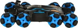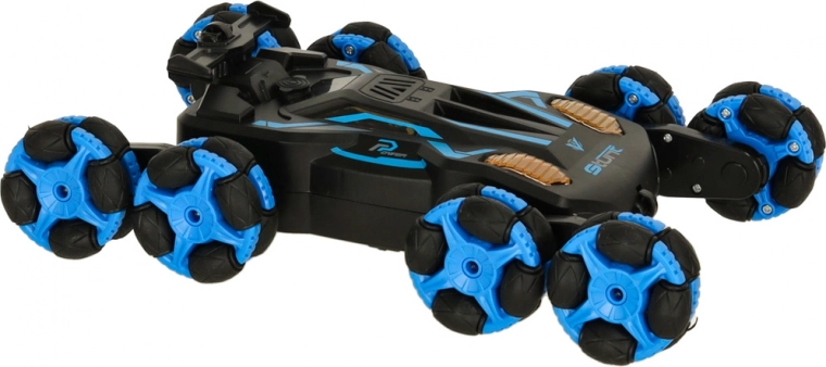 Leuke afstandsbediende auto met 8 omnidirectionele wielen die dankzij de ondersteltransformatie obstakels en kleine traptreden aankan. In de verpakking zitten twee controllers, inclusief gebarenbesturing; spectaculaire verlichting en muziek en een realistisch stoomuitlaateffect zorgen voor uren actieplezier. Ideaal voor kinderen vanaf 6 jaar.