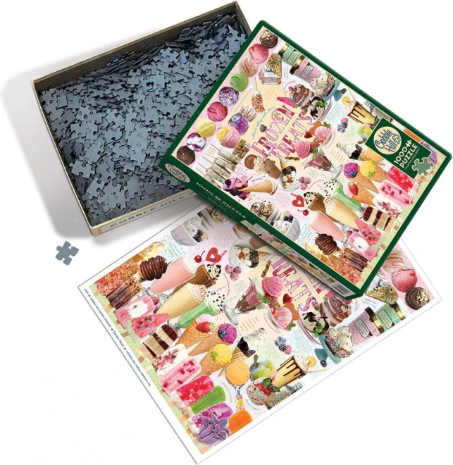 Geniet van leuk puzzelplezier met de COBBLE HILL-puzzel met het motief Bevroren lekkernijen. De stukjes hebben ongewone vormen dankzij de onregelmatige stans, wat zorgt voor een hogere moeilijkheidsgraad en langer vermaak. In de verpakking zit een voorbeeldblad van 31,6 × 22,9 cm, de voltooide puzzel meet 48,9 × 67,6 cm.