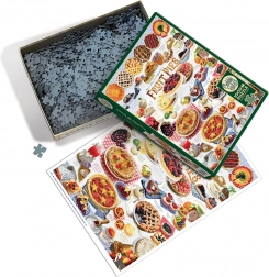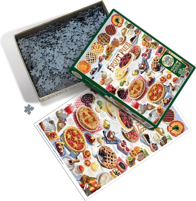 Premium puzzel COBBLE HILL met het motief Taarttijd biedt 1000 stukjes met een onregelmatige stans voor hogere moeilijkheid en langer puzzelplezier. Inclusief een poster-voorbeeld van 31,6 × 22,9 cm; het voltooide beeld meet 48,9 × 67,6 cm.