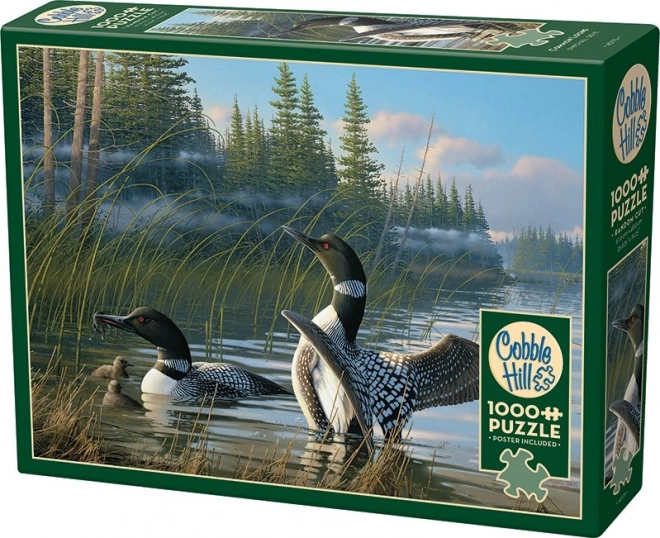 Ontdek de schoonheid van de wilde natuur met de premium COBBLE HILL-puzzel die een rustige scène met ijsduikers in een nevelig moeras vastlegt. Dankzij de hoogwaardige afwerking en gedetailleerde illustratie is het puzzelen meeslepend en het eindresultaat komt tot zijn recht als een stijlvolle decoratie voor thuis.