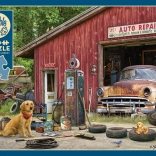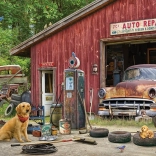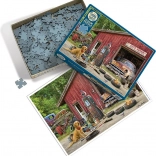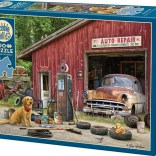 De COBBLE HILL Autowerkplaats puzzel brengt een indrukwekkende vintage scène vol verfijnde details – een roestende oldtimer, een houten garage, oud gereedschap en een iconische benzinepomp. Dankzij de onregelmatige stans liggen randen en hoeken niet op één lijn, wat de moeilijkheid en het plezier van het leggen vergroot en ook ervaren puzzelaars een frisse ervaring biedt.