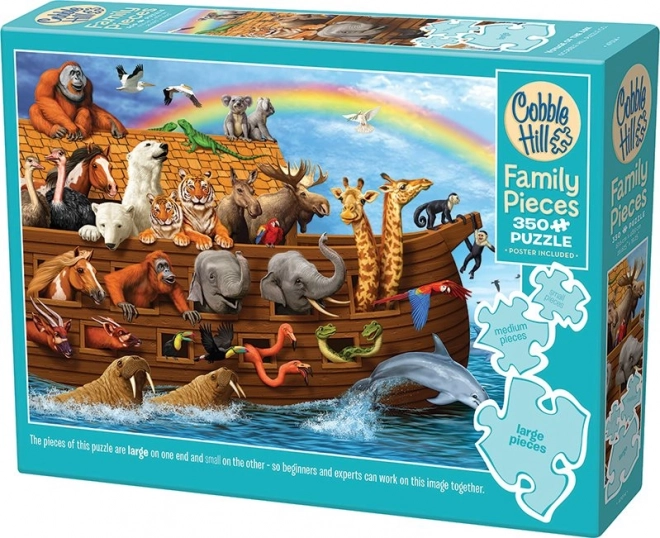 De familiepuzzel COBBLE HILL – De tocht van de ark is ideaal voor gezamenlijke momenten van kinderen, ouders en grootouders. De unieke opzet van het beeld biedt grote stukjes in één deel van het motief voor jongere kinderen, middelgrote stukjes in het midden voor ontspannen puzzelen en kleine stukjes in een ander deel voor volwassenen en ervaren leggers. Zo kiest iedereen het niveau dat bij hem of haar past.