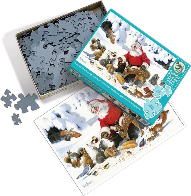 Ontdek de magie van Kerst met de familiepuzzel COBBLE HILL “Kerstman met dierenvrienden”. Dankzij de drie formaten puzzelstukjes kan iedereen in zijn eigen tempo leggen en wordt het een aangename familieactiviteit. Grote stukjes zijn geschikt voor jongere kinderen, middelgrote voor schoolgaande kinderen en grootouders, en kleine stukjes voor meer ervaren puzzelaars.