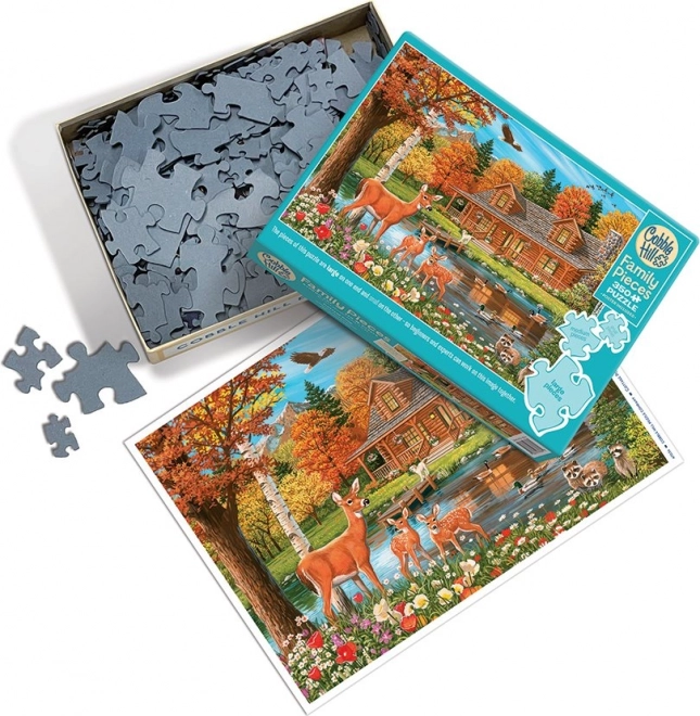 De COBBLE HILL familiepuzzel is zo ontworpen dat iedereen ervan kan genieten – van de allerkleinsten tot volwassenen. Het motief van een idyllische vijver bij een huisje brengt een rustige sfeer en prachtige details die je met plezier zult ontdekken. De indeling van de puzzel in zones met verschillende groottes stukjes maakt comfortabel naast elkaar puzzelen mogelijk.