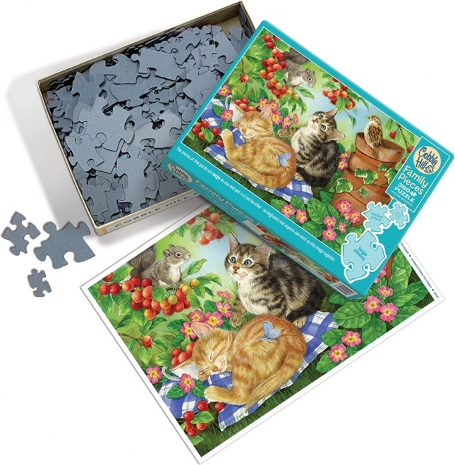 Deze familiepuzzel combineert slim grote, middelgrote en kleine stukjes in één afbeelding. De grote stukjes bevinden zich in één deel van de afbeelding en zijn perfect voor jongere kinderen, terwijl de kleinste stukjes aan de andere kant volwassenen en ervaren puzzelaars zullen bekoren. Het middelste deel met middelgrote stukjes is ideaal voor oudere kinderen of grootouders – het motief is goed leesbaar en het leggen verloopt soepel.