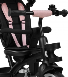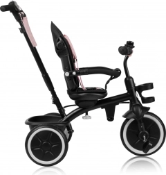Het kinderdriewiel Lionelo Berry Roze combineert de functies van een kinderwagen en een driewieler. Dankzij de draaibare stoel en het in hoogte verstelbare handvat aanpast het zich aan de behoeften van zowel kind als ouder. Veiligheid wordt gewaarborgd door driepuntsgordels, een beschermend frame en een barrière rondom de stoel. Eenvoudige montage zonder gereedschap maakt het hanteren gemakkelijk.