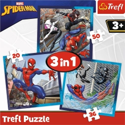 Ontdek het plezier van drie afzonderlijke legpuzzels in één verpakking – een 3-in-1 puzzel met het thema SPIDER-MAN: Spinnende vrienden. Het verschillende aantal stukjes stimuleert de ontwikkeling van de fijne motoriek, geduld en oog voor detail bij jongere en oudere kinderen. De grootste afbeelding heeft een afmeting van 20 × 19,5 cm en de puzzels zijn in Polen gemaakt van ecologische materialen.