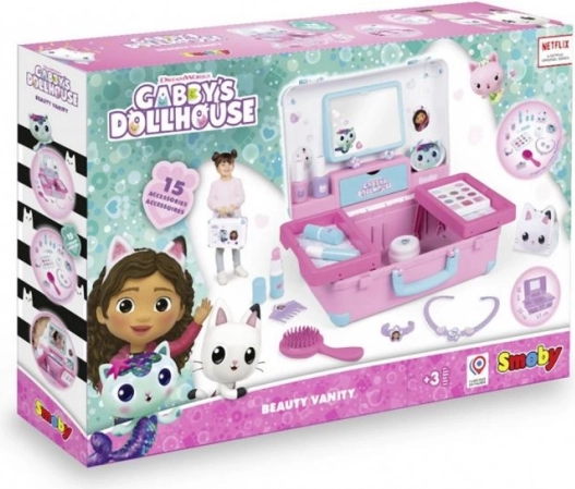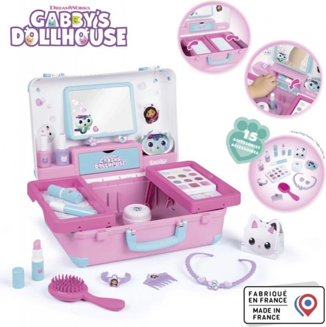 De koffer is voorzien van een praktische spiegel, plankjes, compartimenten en een geheime vak voor het veilig opbergen van favoriete items. Door het compacte ontwerp is hij gemakkelijk draagbaar, waardoor spelen met kapper en make-up overal mogelijk is.