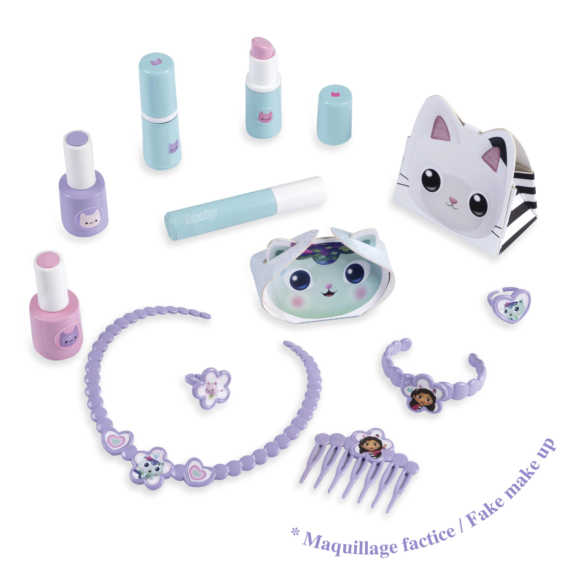 Bevat “cosmetische” flesjes, lipsticks, mascara, kam, ketting, armband, ringen en meer voor realistisch spel.