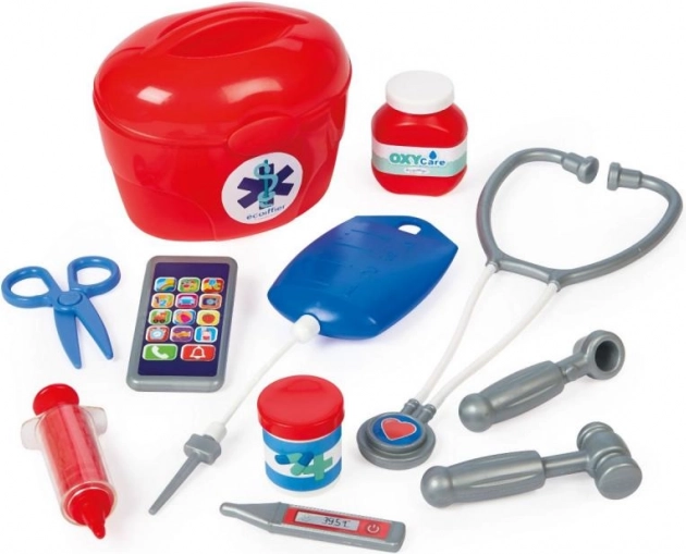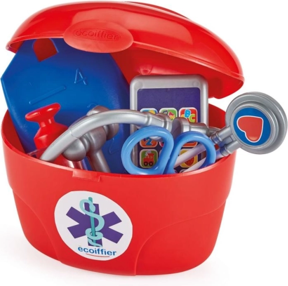 Er is een rode dokterskoffer inbegrepen waarin kinderen alle instrumenten kunnen opbergen. Alles blijft bij elkaar en klaar voor de volgende speelsessie.