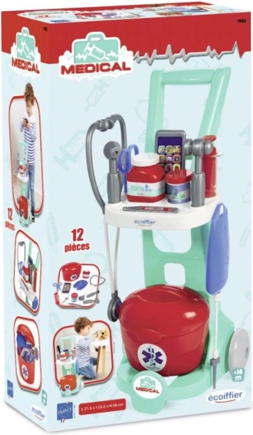 Deze kleurrijke dokterkar is een uitstekende keuze voor kleine artsen. Dankzij de praktische opbergruimte en overzichtelijke indeling hebben kinderen alle instrumenten altijd bij de hand – van stethoscoop tot thermometer. Doktertje spelen stimuleert op natuurlijke wijze empathie en verbeeldingskracht en leert kinderen de basis van gezondheidszorg.