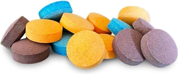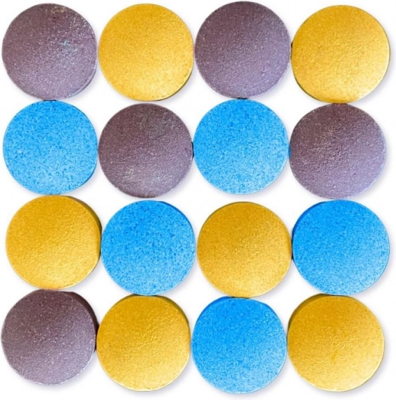 Vier opvallende kleuren (blauw, roze, paars, geel) vloeien tijdens het oplossen in elkaar over en toveren je bad om tot een speels kleurenspektakel.
