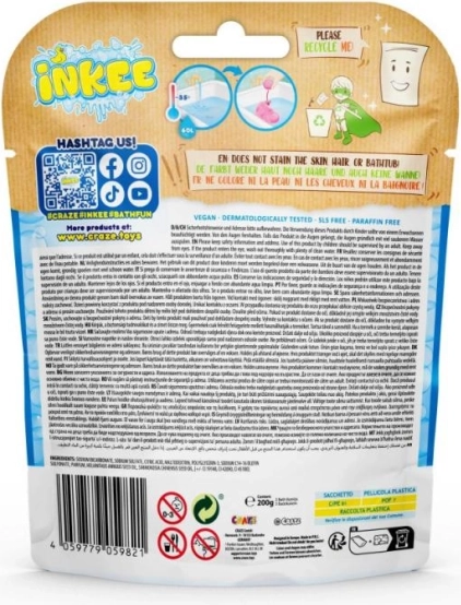 INKEE-producten zijn ontwikkeld met oog voor kinderen en natuur – ze zijn vegan, zonder microplastics, zonder SLS, zonder paraffine en geschikt voor kinderen vanaf 3 jaar. Verpakt in een handig zakje met venster voor eenvoudige kleurselectie.