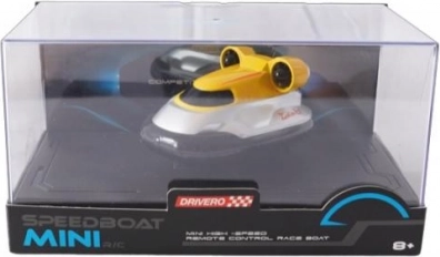 De gele mini RC hovercraft DRIVERO is een uitstekende keuze voor kinderen en volwassenen die op zoek zijn naar een leuk model voor wateroppervlakken en gladde ondergronden. Het compacte formaat en het lage gewicht zorgen voor wendbaarheid, terwijl de watersensor extra veiligheid biedt – het model start pas bij contact met water.