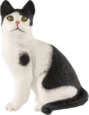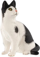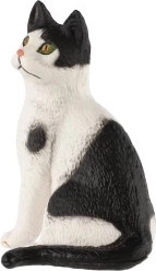 Fijne vachtextuur, nauwkeurige proporties en zwart-witte kleuring zorgen voor een authentieke uitstraling – het figuurtje lijkt op een echte zittende kat.