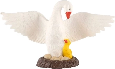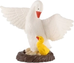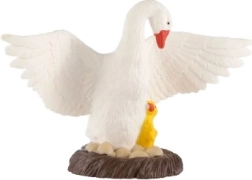 Decoratief beeldje van een gans met kuiken, ideaal voor liefhebbers van natuur en decoratie. Dit plastic beeldje valt op door het gedetailleerde vleugelwerk en de fijne vormen.