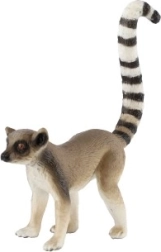 Het plastic figuur kenmerkt zich door een realistisch ontwerp dat nauwkeurige kenmerken van de lemur kata weergeeft, inclusief de zwart-wit gestreepte staart en gedetailleerde gezichtsuitdrukkingen.