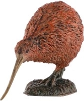 Het getextureerde oppervlak imiteert het dichte bruine “verenpak” en accentueert de lange, slanke snavel die kenmerkend is voor de Owen-kivi.