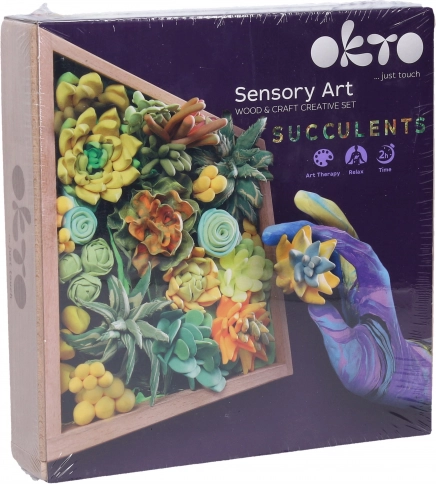 Ontdek creatieve fun voor kinderen en volwassenen met deze creatieve modelleerset met vetplanten in een elegante houten lijst van 21 × 21 cm. Alles wat je nodig hebt zit in de doos: modellermassa’s, houten vormgereedschap, penseel en handleiding voor het eenvoudig maken van een decoratie die elk interieur tot leven brengt.