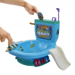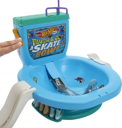 Ga los met de knotsgekke set HOT WHEELS Skate Flush & Go – een fingerboard-skatepark in de vorm van een toilet. Druk op de hendel en laat het fingerboard los in de reusachtige kom, rijd over de op toiletpapier geïnspireerde ramps, en pak de achterste ramp en de rail. Er is opbergruimte voor 4 fingerboards en 6 paar vinger-schoenen en in de doos vind je 1 fingerboard en 1 paar afneembare vinger-schoenen.