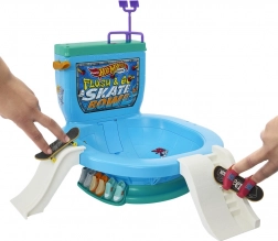 HOT WHEELS Skate Flush & Go is een leuk fingerboard-skatepark dat de 'toiletkom' verandert in de perfecte bowl voor tricks. Met een druk op de hendel lanceer je het board rechtstreeks de actie in en ga je door met sprongen vanaf de ramps, grinds over de rail en drops van de achterste ramp. Ideaal voor het trainen van skills en eindeloze speelscenario's.