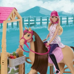 Inbegrepen zijn een Barbie-pop in ruiterkleding, een paard met realistische details en lange, zachte manen, een stal met overkapping en een uitgebreide set accessoires voor fantasierijk spel. De set is ideaal voor kinderen vanaf 3 jaar die van paarden, dierenverzorging en het vertellen van hun eigen verhalen houden.