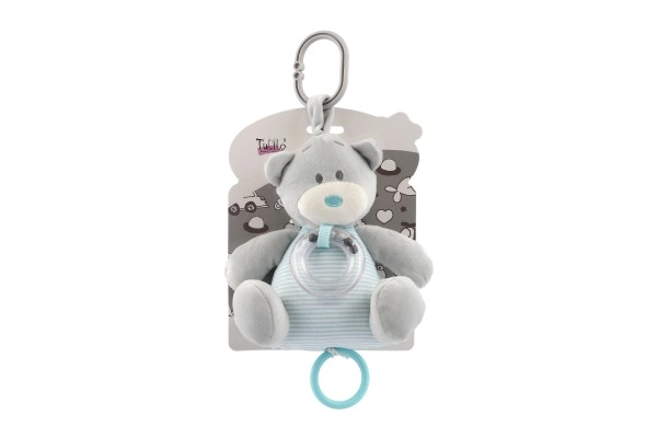 Schattige muzikale teddybeer TULILO in blauw‑crème brengt kinderen een rustgevende melodie en een zachte aanraking. Gemaakt van zacht pluche en veilig plastic, zonder batterijen en dankzij de compacte hoogte van 18 cm perfect voor in de kinderwagen, wieg of kinderkamer.