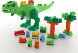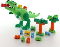 De dinosauriër bouwset bevat 30 delen die de ontwikkeling van de kinderfantasie en coördinatie ondersteunen. Deze t-rex slaat op een leuke manier blokjes op in zijn buik en leert kinderen al spelend.