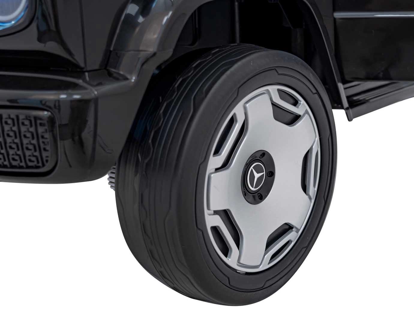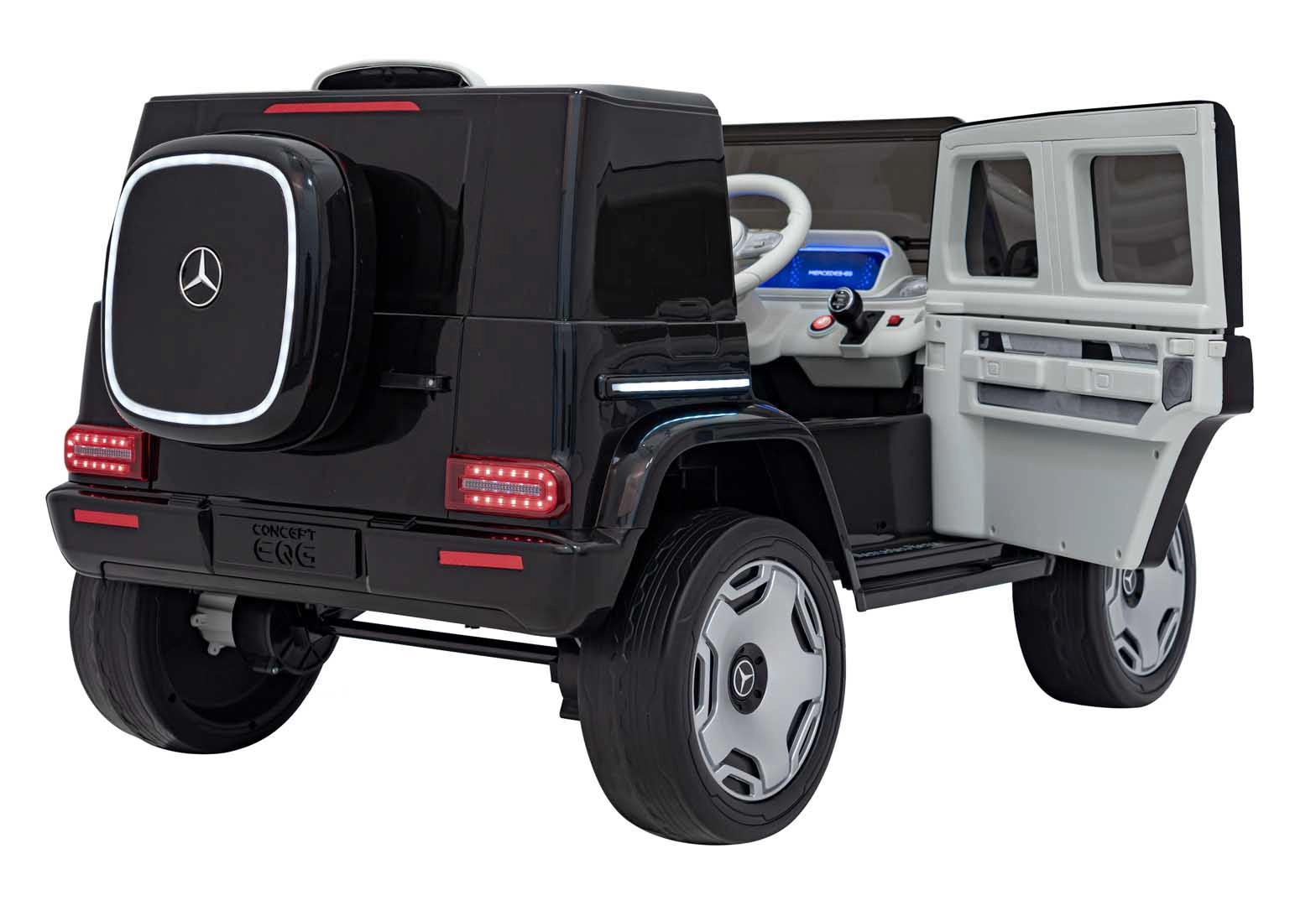 Geef kinderen een authentieke rijervaring met de elektrische MERCEDES‑BENZ EQG kinderauto. Twee krachtige aandrijvingen (2×20 W + 2×45 W) en een soepele start zorgen voor comfortabel rijden vooruit en achteruit, terwijl de achterasvering stabiliteit in terrein biedt en de grote, zachte EVA‑wielen (26×10 cm) oneffenheden uitstekend dempen.