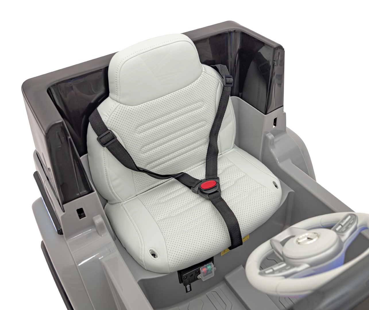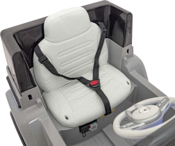 Ouders waarderen de 2,4 GHz afstandsbediening met drie snelheden en de veiligheidsknop STOP. De auto heeft een soepele start, vooruit/achteruit rijden en twee snelheden wanneer het kind zelf bestuurt. De luxe stoel van eco-leer met veiligheidsgordel verhoogt zowel comfort als veiligheid.