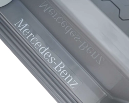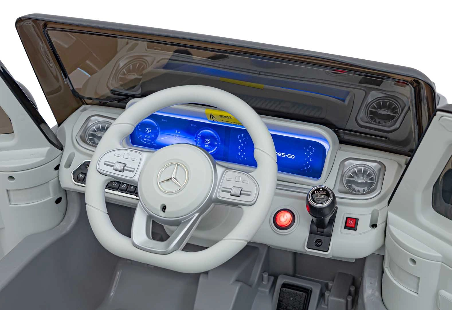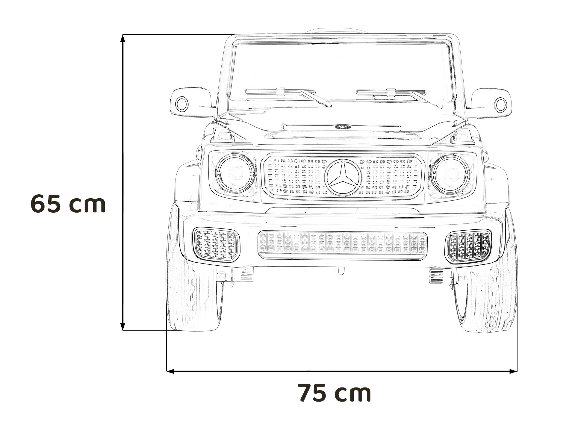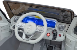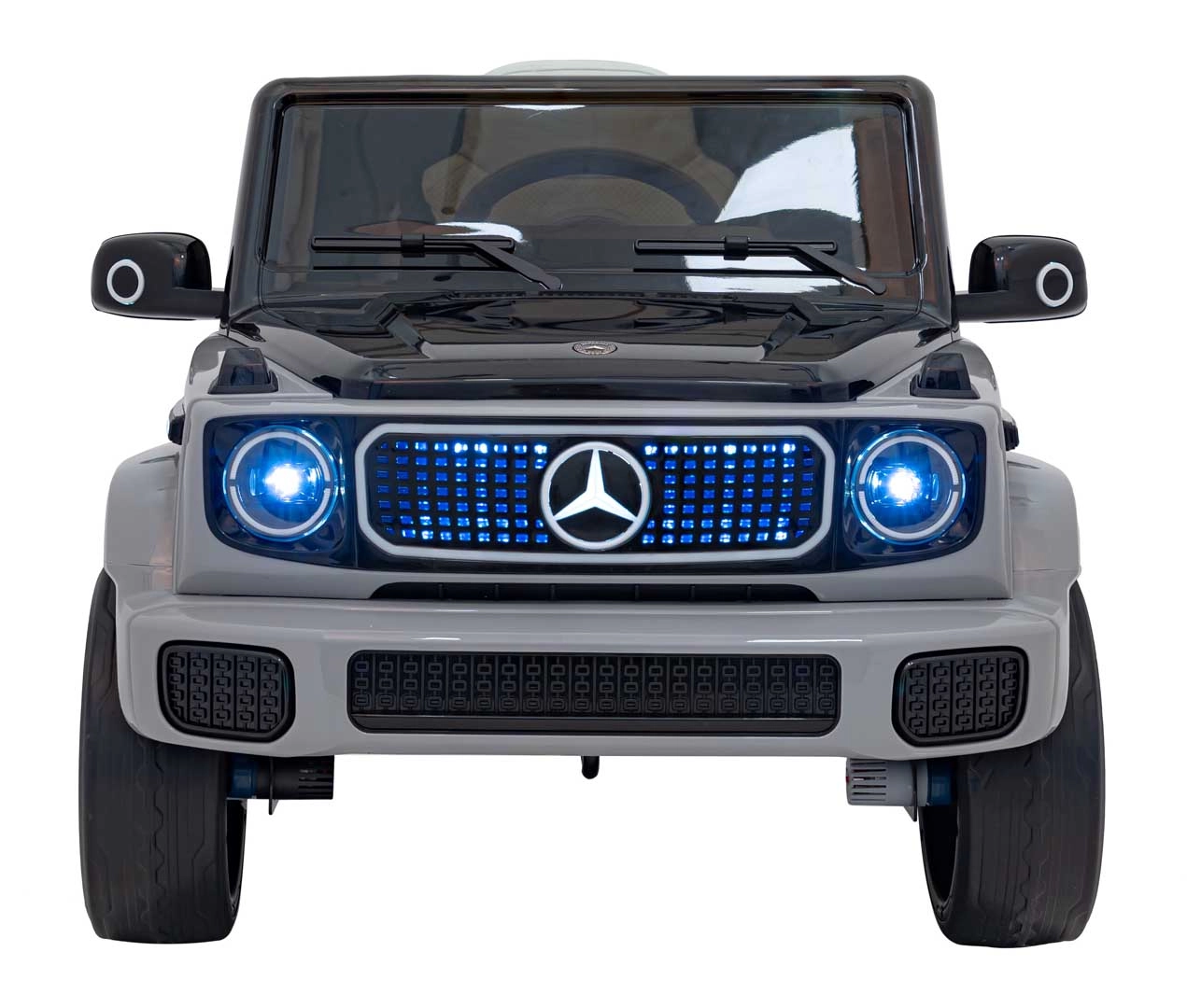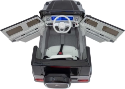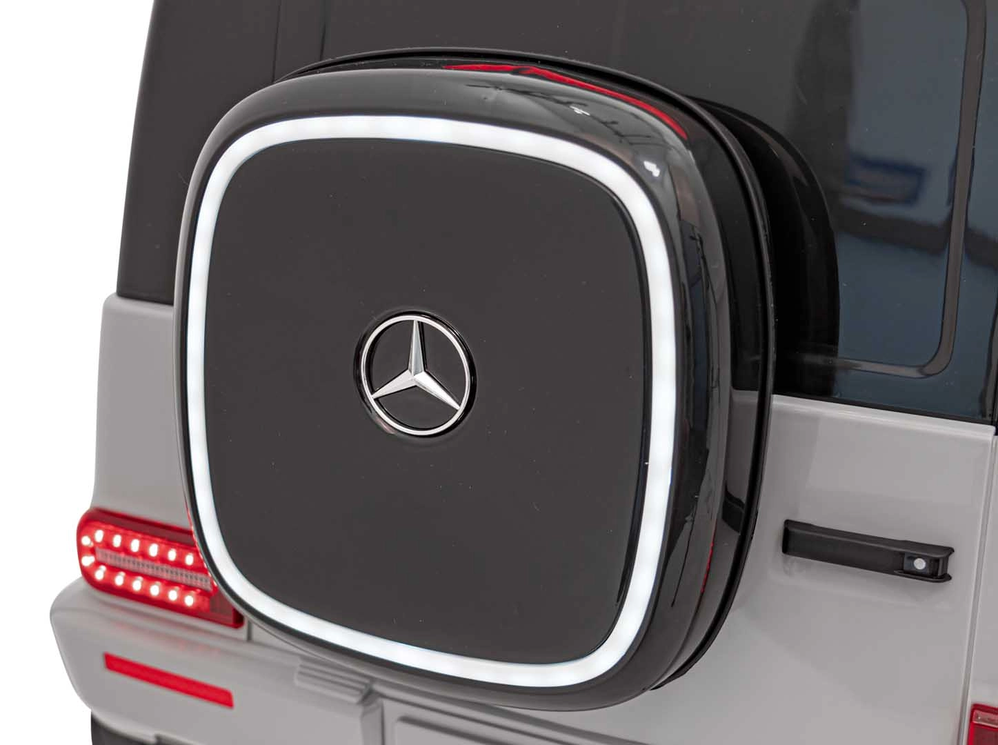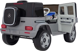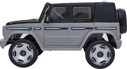Ontdek de premium elektrische kinderauto geïnspireerd op de Mercedes-Benz EQG. Kinderen zullen blij zijn met de te openen deuren, de LED-verlichting voor en achter, inclusief zijdelingse carrosserieverlichting en het verlichte achterste “reserve” wiel. Zachte EVA-banden en achterwielvering zorgen voor comfort op diverse ondergronden.