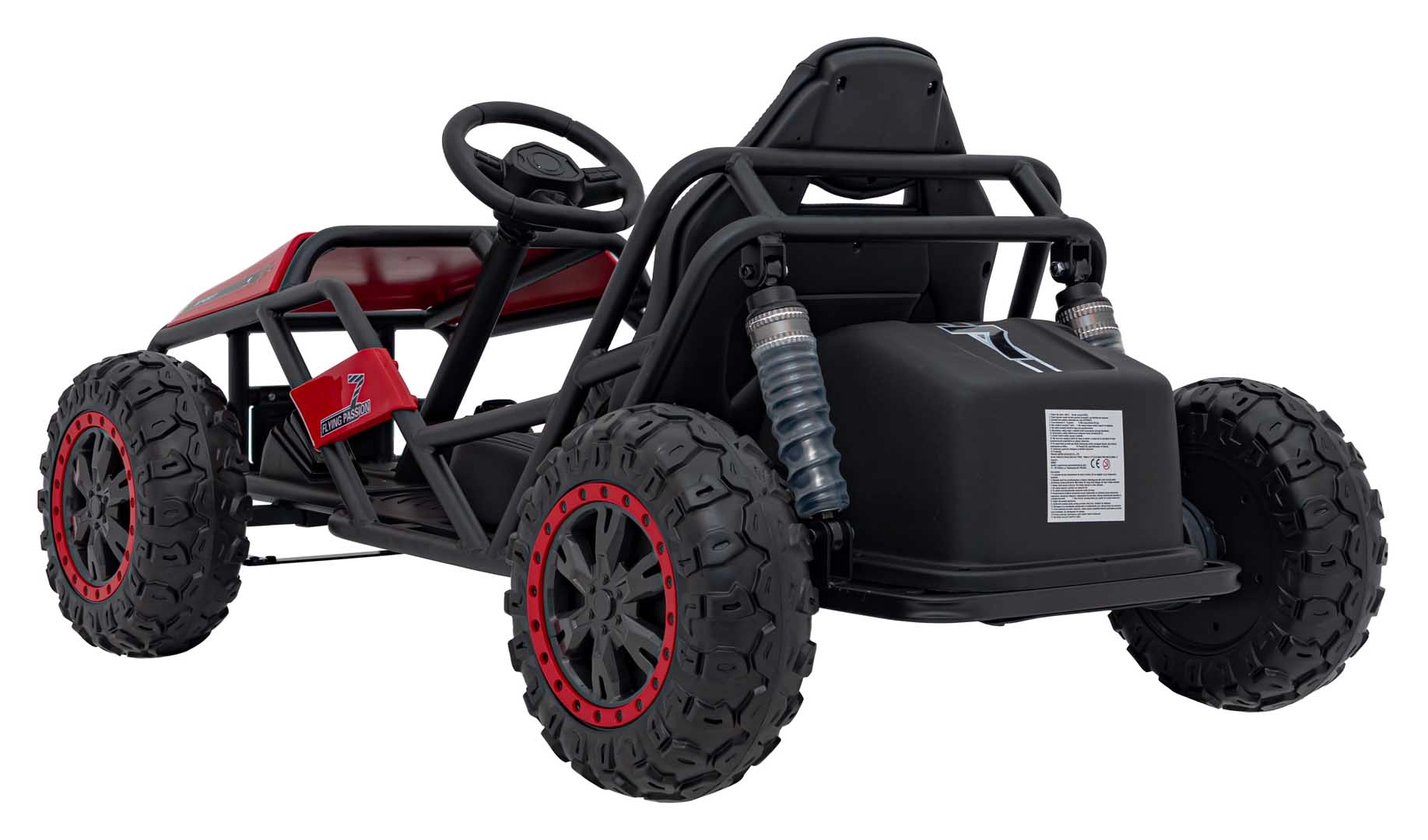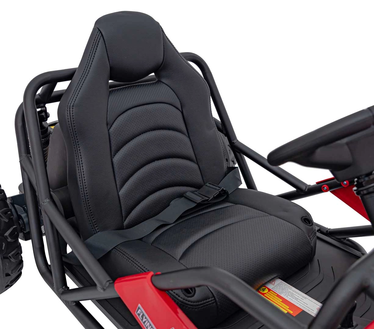De ergonomische zitting van eco-leer (38 × 28 × 45 cm) met veiligheidsgordels houdt het kind comfortabel en veilig. De bediening is intuïtief – rijden vooruit/achteruit en een soepel reagerend pedaal maken de eerste ritten eenvoudig. De constructie is berekend op een draagvermogen tot 60 kg, zodat de skelter met het kind meegroeit.