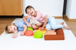 Verschillende texturen en nopjes activeren de receptoren in de voeten, bevorderen de doorbloeding en versterken de zintuiglijke waarneming tijdens spel en therapie.