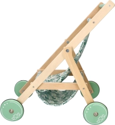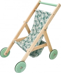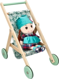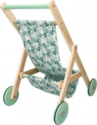 De lichte houten poppenwagen combineert tijdloos natuurlijk materiaal met een speels textielen zitje in bladontwerp. Gladde handgrepen en stille wieltjes zorgen voor comfortabel duwen binnenshuis, terwijl de stevige constructie zekerheid en stabiliteit biedt tijdens het spel.