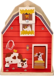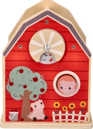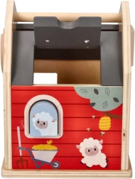Deze doos bevat vijf kleurrijke vormen die verschillende boerderijdieren voorstellen, zoals een schaap, biggetje en koe, die kinderen in de bijpassende openingen in de boerderijkant kunnen plaatsen. De vormen zijn groot genoeg zodat kinderen er zelfstandig mee kunnen spelen.