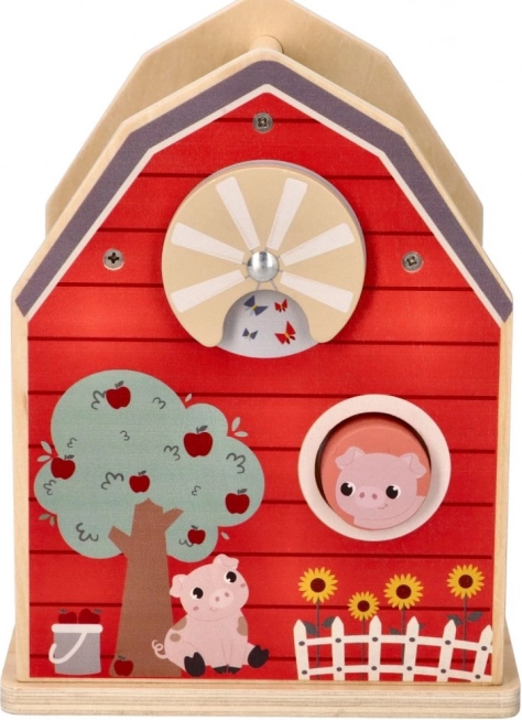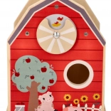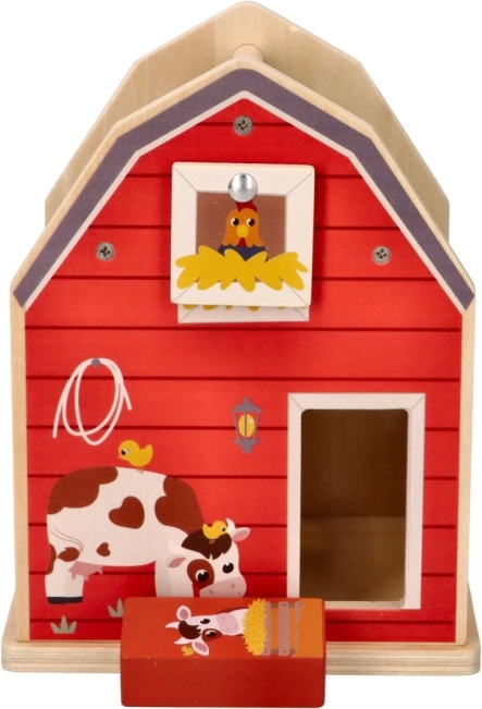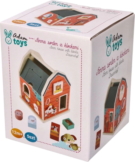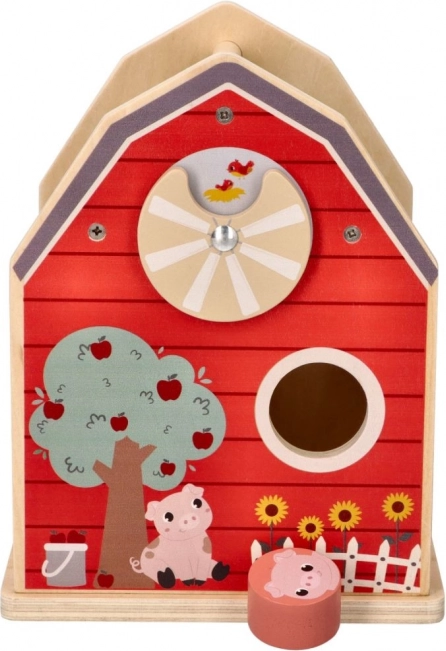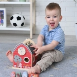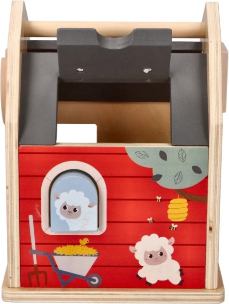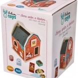 De houten boerderij-vormensorteerdoos is het ideale speelgoed voor kleine kinderen die coördinatie en vormherkenning leren. De boerderijconstructie met openende deuren en dak biedt gemakkelijke toegang tot de vormen en daarmee eindeloze mogelijkheden voor interactief spel. Kinderen leren verschillende vormen en kleuren herkennen terwijl ze hun fijne motoriek trainen.