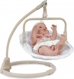 Dankzij de afneembare en omkeerbare zitting kan het product gebruikt worden als kinderstoel met blad, een rustgevende schommel of als los draagzitje. De robuuste metalen constructie wordt gecombineerd met lichte kunststof onderdelen en een aangename textielbekleding voor comfort van de pop en eenvoudig onderhoud.