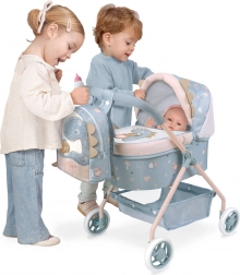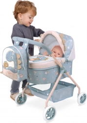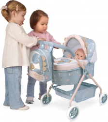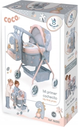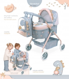 Ontdek de eerste poppenwagen, ontworpen voor de allerkleinsten. Dankzij het lage handvat, de lichte constructie en de soepele besturing rijdt hij gemakkelijk zowel binnen als buiten. Het ontwerp van de COCO-collectie in zacht grijsblauw met zand- en roze accenten wordt aangevuld met een speels motief van een dinomoeder met haar jong.