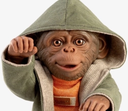 Vinyl lichaam van een realistisch aapje, dat geloofwaardige details en speelervaringen mogelijk maakt.