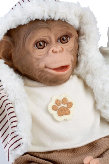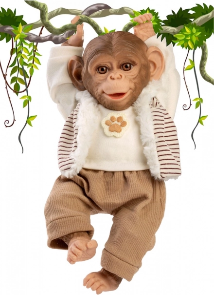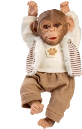 Deze realistisch vormgegeven babyaap brengt kinderen veel plezier en verbeelding tijdens het spelen. Dankzij het zachte stoffen lijfje is hij heerlijk om te knuffelen, terwijl het vinyl hoofd en de ledematen met mooie details levensecht ogen. De aap is poseerbaar – je zet hem eenvoudig neer of hangt hem op aan handen of voeten, waardoor hij een favoriete speelkameraad én een leuke decoratie in de kinderkamer wordt.