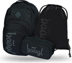Ga voorbereid naar school of de stad met deze verfijnde set van het merk Baagl. De Coolmate Black rugzak biedt een ergonomisch gevormde rug en comfortabel gepolsterde banden. De lengte van de banden kan precies afgesteld worden dankzij de betrouwbare gesp. Binnenin vindt u drie afzonderlijke compartimenten en speciale vakken voor een laptop of kleine spullen. De etui houdt al uw schrijfgerei overzichtelijk binnen handbereik en de zak is ideaal voor het dragen van schoenen of vrijetijdsbenodigdheden.