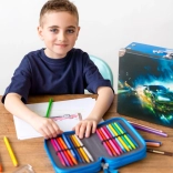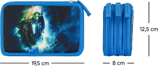 Ondanks zijn ruime opzet heeft de etui compacte afmetingen, waardoor het gemakkelijk draagbaar is en eenvoudig in kleinere schooltasjes en rugzakken past.