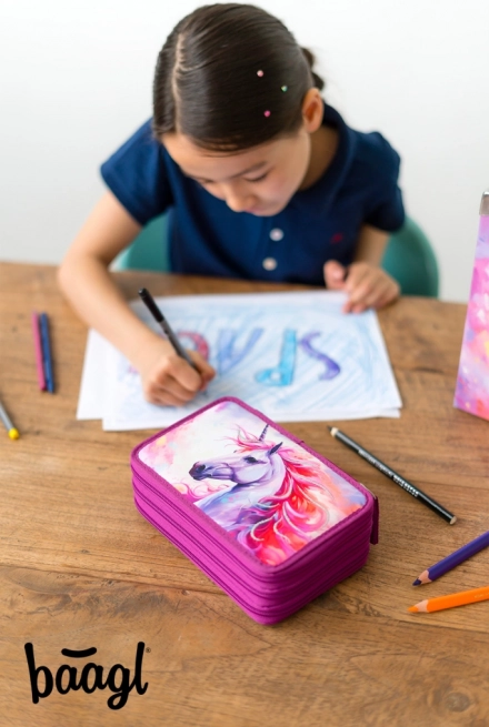 De stijlvolle combinatie van een fantastisch eenhoornmotief en praktisch ontwerp maken deze etui de perfecte keuze voor elke scholier.