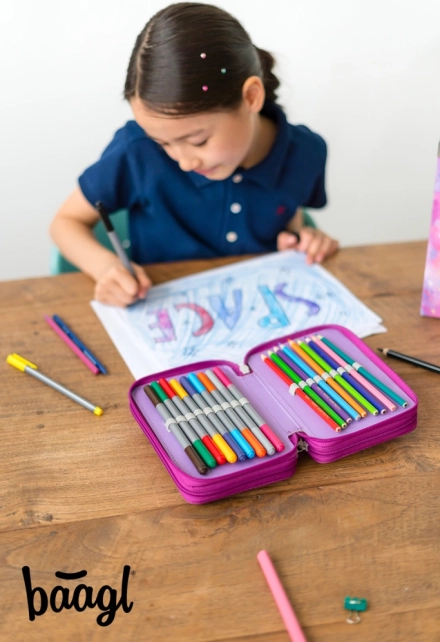 Verbeter uw schooluitrusting met deze drielaagse etui, die voldoende ruimte biedt voor al uw kleurpotloden, stiften en andere schoolbenodigdheden. De etui is uitgerust met elastische banden die ook geschikt zijn voor dikkere schrijfmaterialen, wat organisatie en gemakkelijke toegankelijkheid mogelijk maakt.