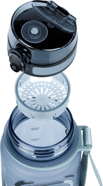 Uitgerust met een praktische vergrendelbare dop en zeef, waardoor het geschikt is voor verschillende soorten dranken, inclusief limonades met fruit of theeën. Dankzij de bevestigde lus is het dragen van de fles zeer comfortabel. De fles draagt actief bij aan de bescherming van het milieu door het verminderen van plastic afval.