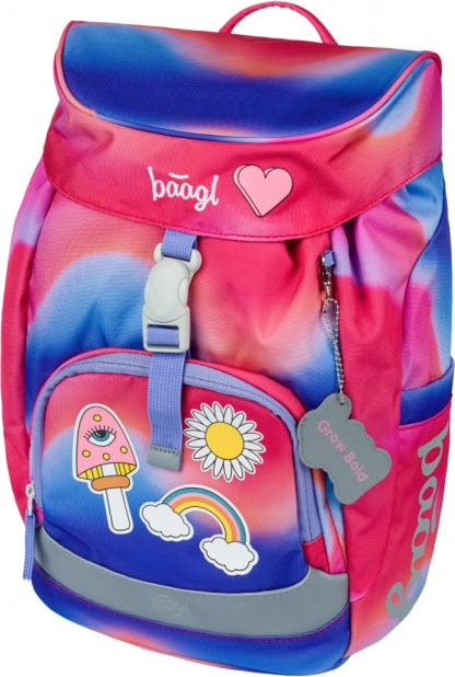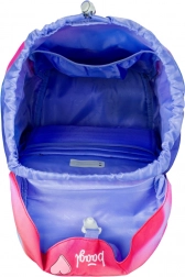 De rugzak heeft een enkelvoudige interne indeling die het overzicht vergemakkelijkt, en een apart vak voor mappen. Het voorvak met rits is ideaal voor het veilig opbergen van een broodtrommel, terwijl de zijvakken met elastiek flessen tegen uitvallen beveiligen. Magnetische sluiting maakt het hanteren eenvoudig, zelfs voor de kleinsten.