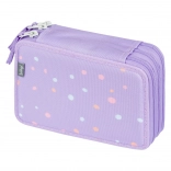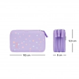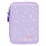 Doordachte elastieken zijn ontworpen om ook dikere kleurpotloden en stiften comfortabel te houden. De etui is gemaakt van duurzaam textiel en de speelse stippenprint in paarse tinten past perfect bij elke schoolset. Wordt geleverd zonder inhoud, zodat je hem precies naar wens kunt inrichten.